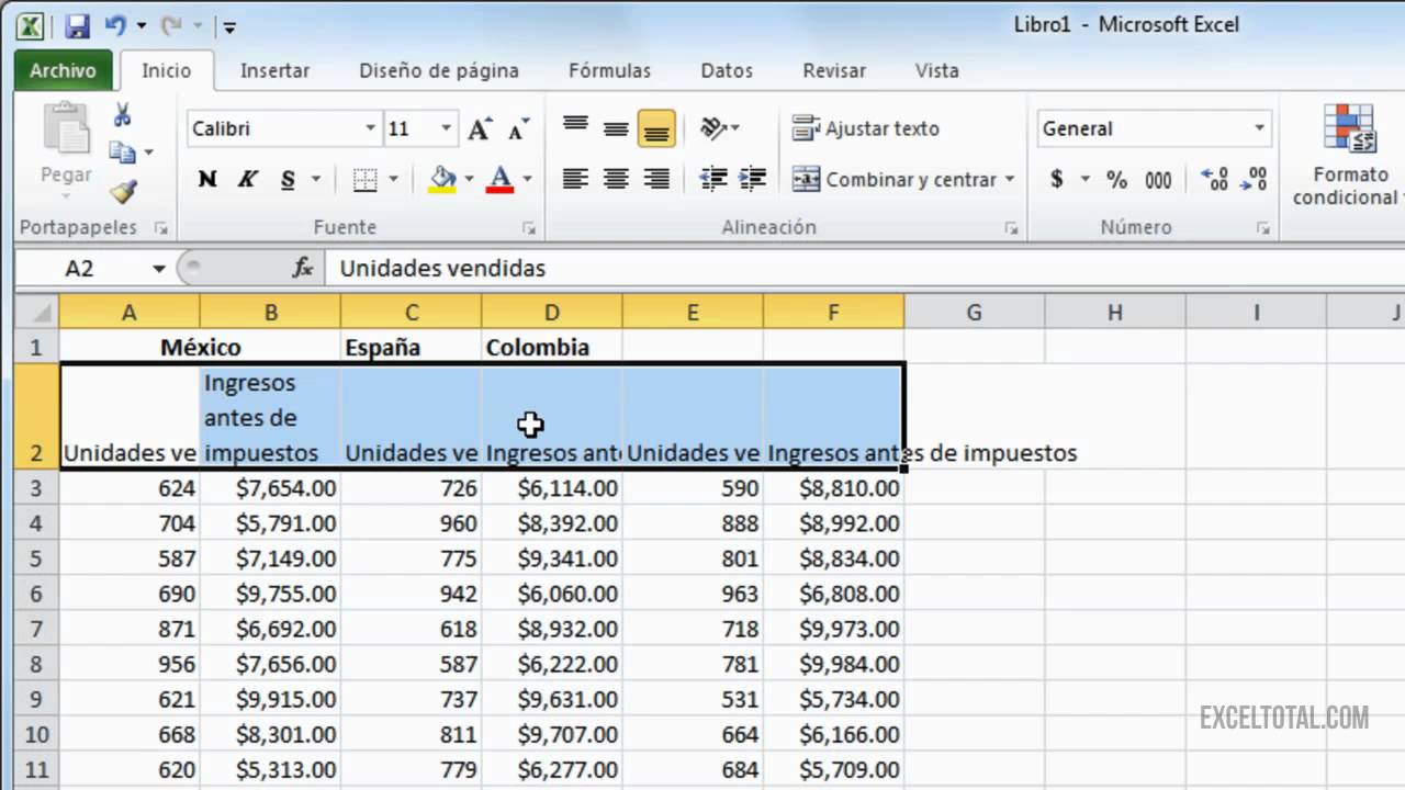 - Seleccione el rango de celdas sobre las que desea centrar el texto.