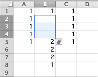 Cuando inserte celdas en blanco, puede elegir si desea desplazar otras celdas hacia abajo o hacia la derecha para dar cabida a las nuevas celdas. Las referencias de celda se ajustan automáticamente para que coincidan con la ubicación de las celdas desplazadas.