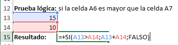 =SI(A13 > A14; A13 + A14 ; FALSO)